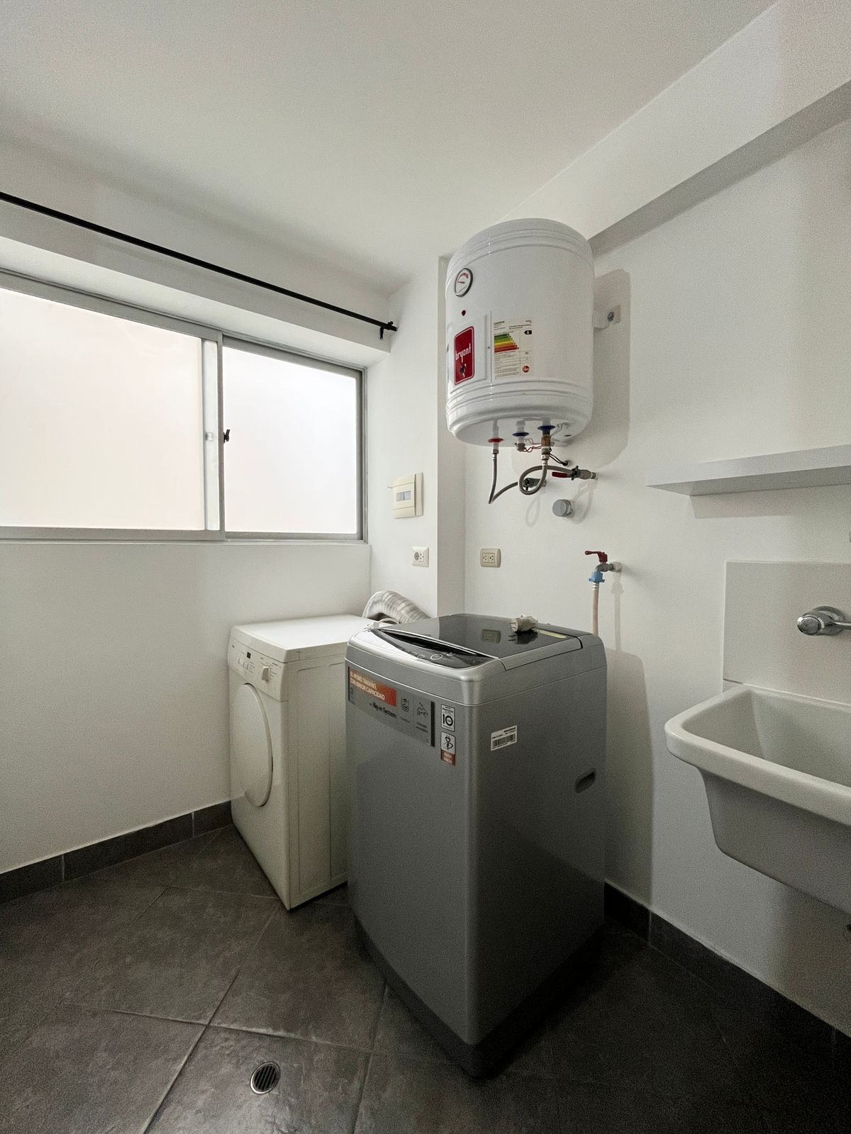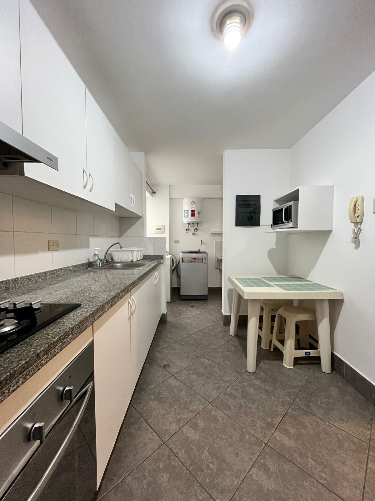 Extra: sala con balcón, cocina equipada, lavandería con lavadora y secadora.