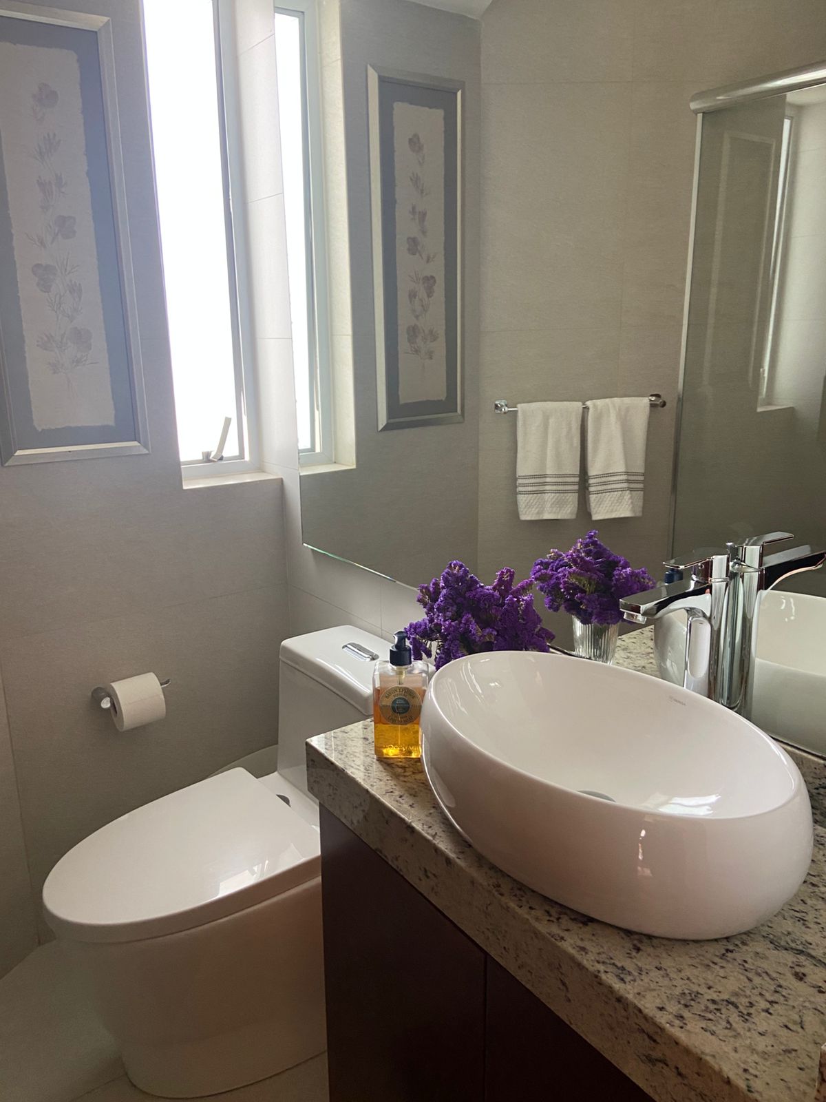 Los otros dos dormitorios comparten Baño, q a la vez hace de visita.